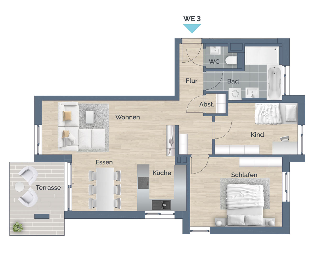 Ein praktischer Abstellraum innerhalb der Wohnung bietet zusätzlichen Stauraum für Haushaltsgegenstände und mehr.