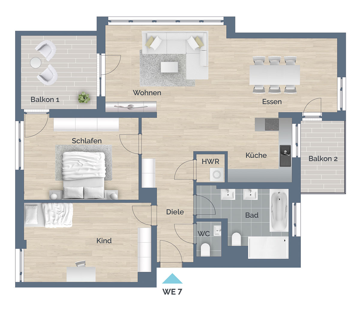 Ein praktischer Hauswirtschaftsraum innerhalb der Wohnung bietet zusätzlichen Stauraum für Haushaltsgegenstände und ermöglicht eine effiziente Organisation Ihres Haushalts..